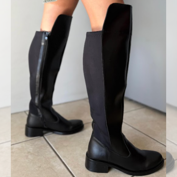 Bota de montar color negro, material eco cuero, con cierre, horma grande, bota amplia, largo de caña 48cm, diámetro de gemelo 45cm aprox. Ideales para piernas largas.