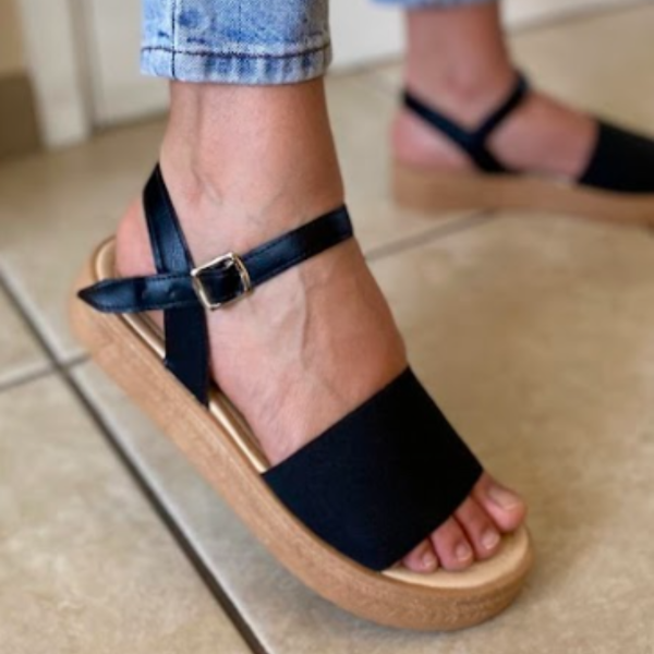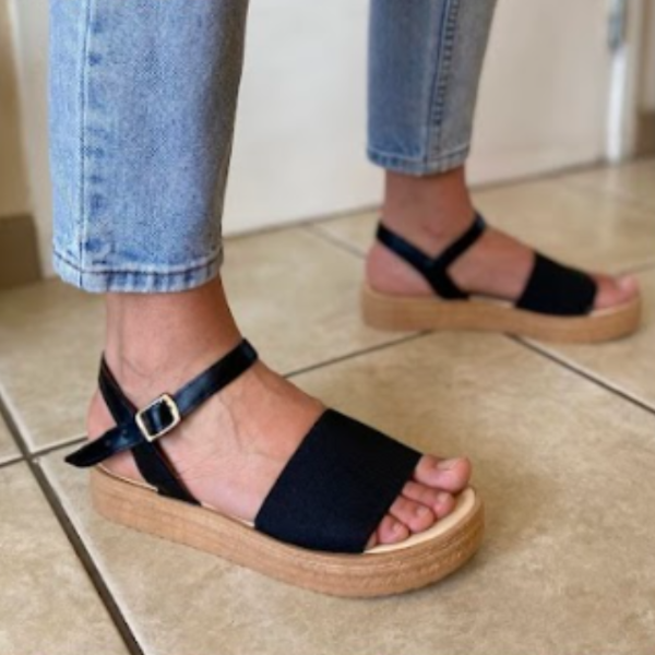 Sandalias Mujer Plataforma Baja Suela Goma y Faja Ancha - [Negro / Beige] - Confort Urbano - Verano 2026