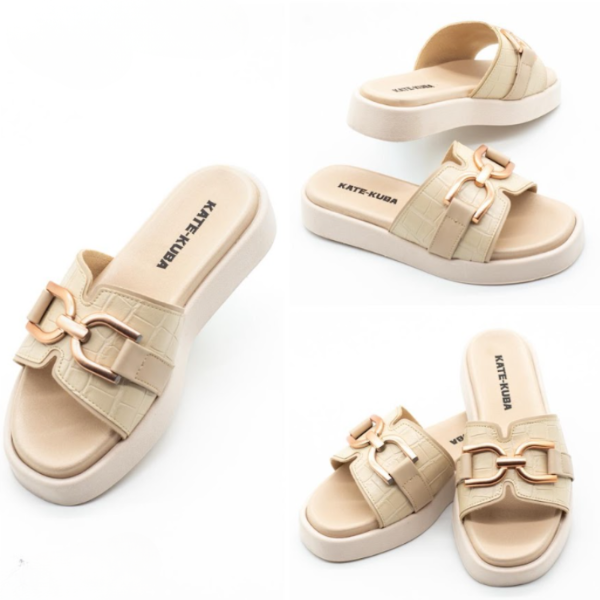 Elevá tu estilo diario con el modelo Solana. Estas sandalias tipo mule fusionan la tendencia "Old Money" con la máxima comodidad. Su diseño destaca por una faja ancha en cuero sintético con textura croco, coronada por un elegante estribo metálico entrelazado que le da un aire de lujo atemporal. Montadas sobre una base de plataforma anatómica (estilo Kate Kuba), son la opción ideal para quienes buscan verse arregladas sin sacrificar el bienestar de sus pies.